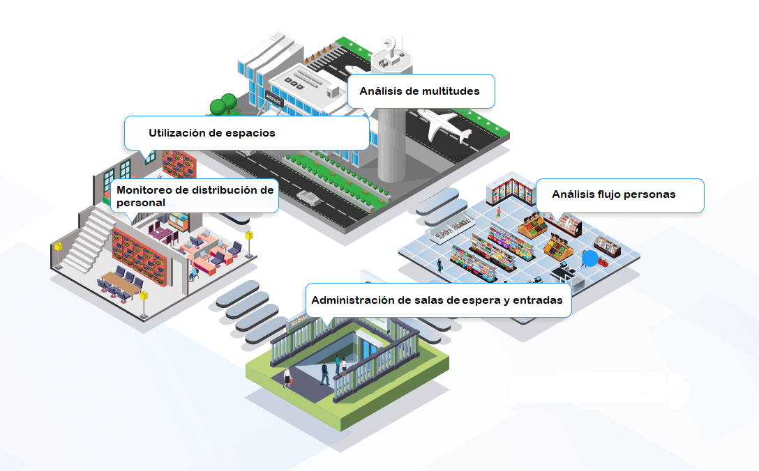 - Toma de decisiones informadas: El conteo de personas es una pieza clave para mejorar el uso de espacios, obteniendo información precisa para detectar oportunidades al planear un mejor uso de las áreas.
